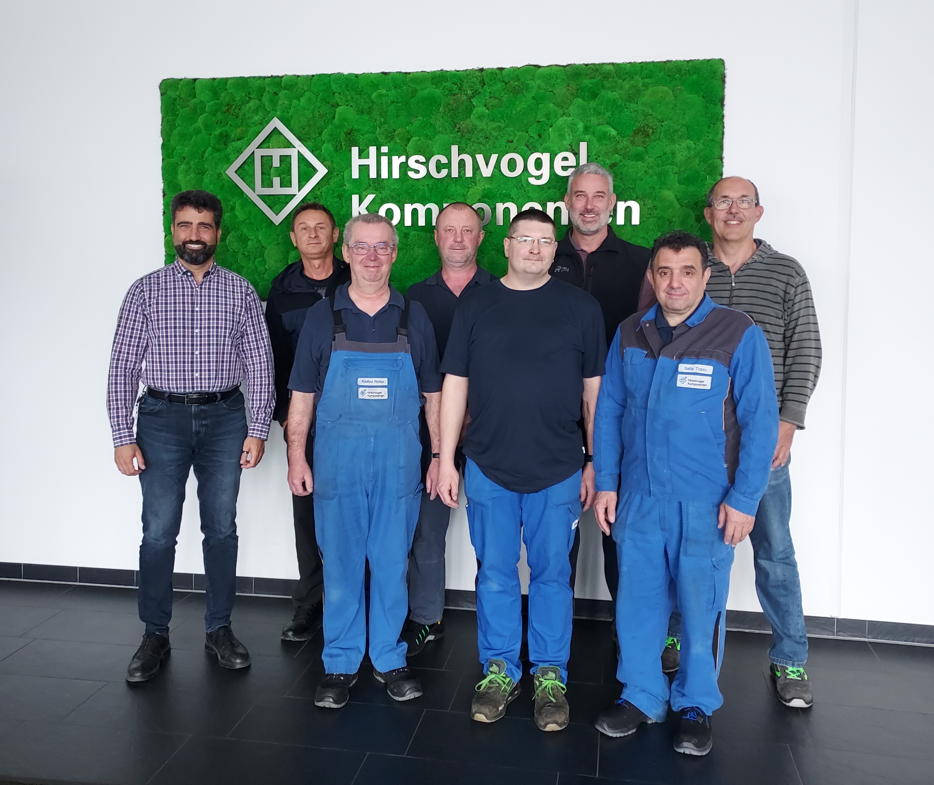 - Bild: Von links: Dr. Davis Fata (Werkleiter), Alexander Stavaru, Manfred Richter, Valerias Müller, Stefan Soyter, Joachim Haß, Galip Topcu und Thomas Schirmer